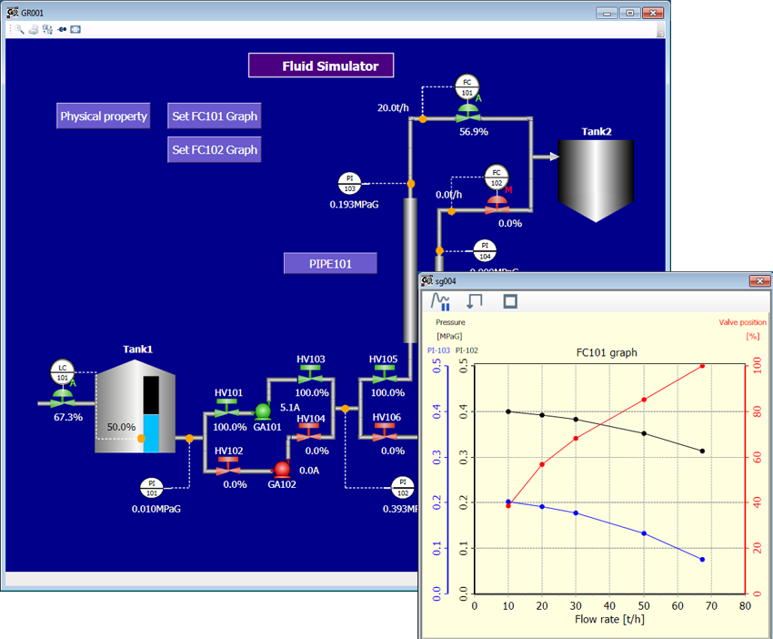 - By changing the flow rate setting, ensuring that the upstream and downstream pipe pressures and the degree of opening of the control valve change (by collecting and plotting various types of data, and checking the properties as a pattern).