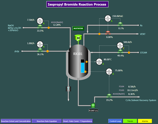 - Stoichiometry, thermodynamics, chemical equilibrium, and reaction kinetics using liquid phase reactions in continuous stirred tank reactor (CSTR).