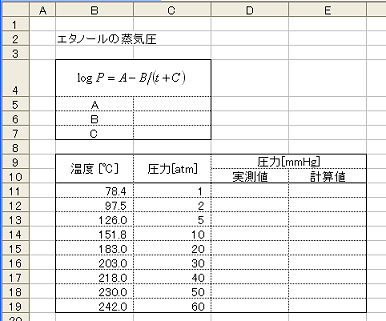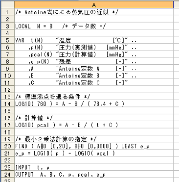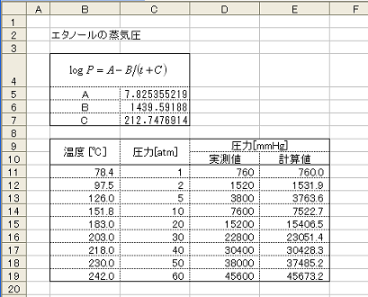 = Excelアドイン実地例 : カーブフィッティング(Antoine式による蒸気圧の近似) =