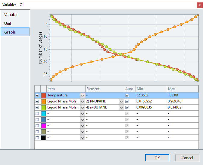 Visual Modelerのパラメータ設定画面では、ポンプなどのパフォーマンスカーブやバルブの特性曲線、蒸留塔内の温度や組成などのプロファイルなどをグラフ表示する機能が追加されています。また、表示モードとして「エンジニア」、「オペレータ」、「インストラクタ」の3つを切り替えることができ、それぞれのモードに応じて表示される画面が変更されます(一部対応していないユニットがあります)。